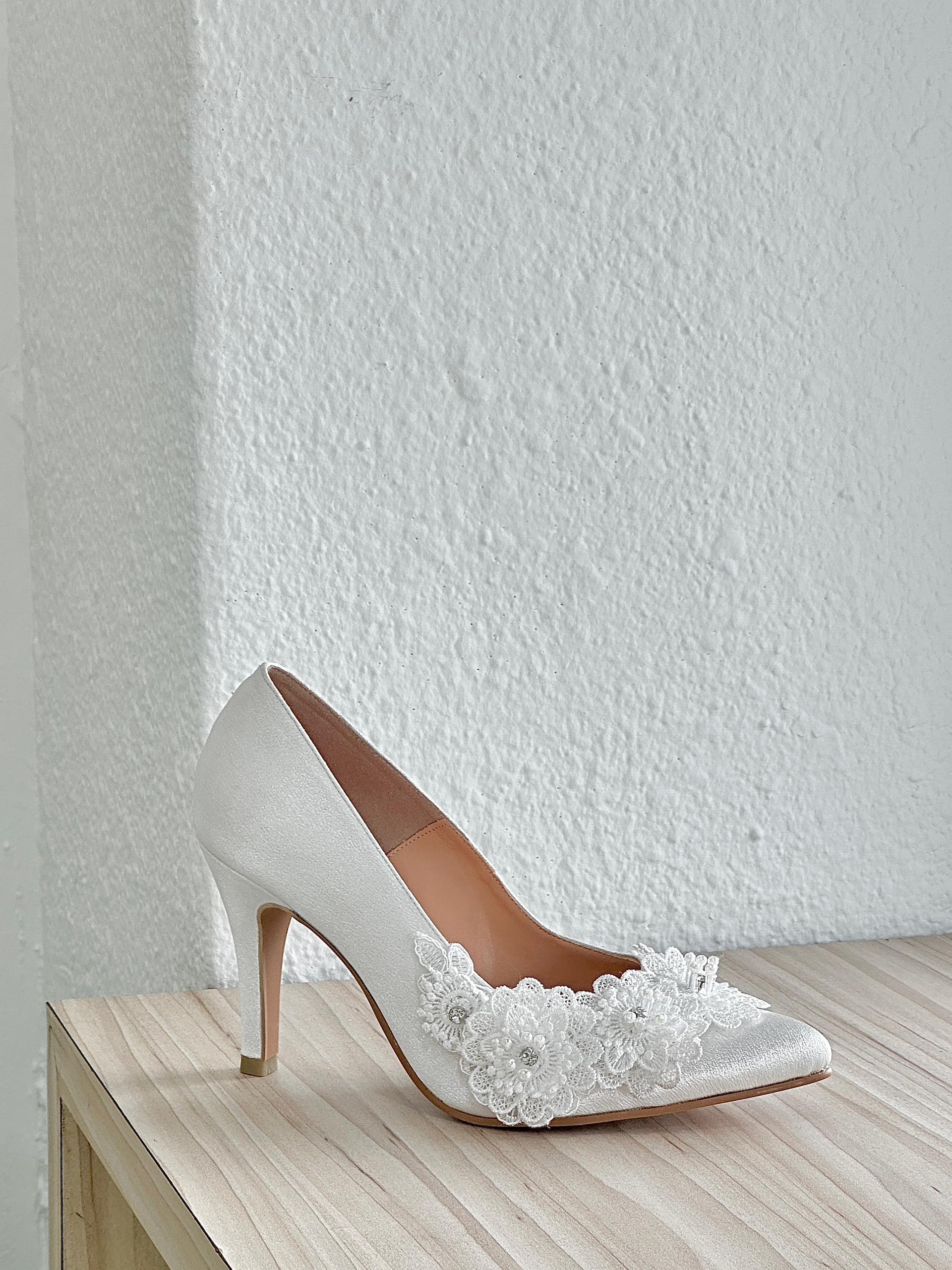 Agnes is made from satin fabric that elegantly wraps your feet and highlights the flattering pointed toe of this pumps. The see-through mesh creates an almost non-existent look and leg extension effect. The padded footbed of these pointed high heels makes it a comfortable choice for weddings or parties. It was handcrafted in Malaysia.