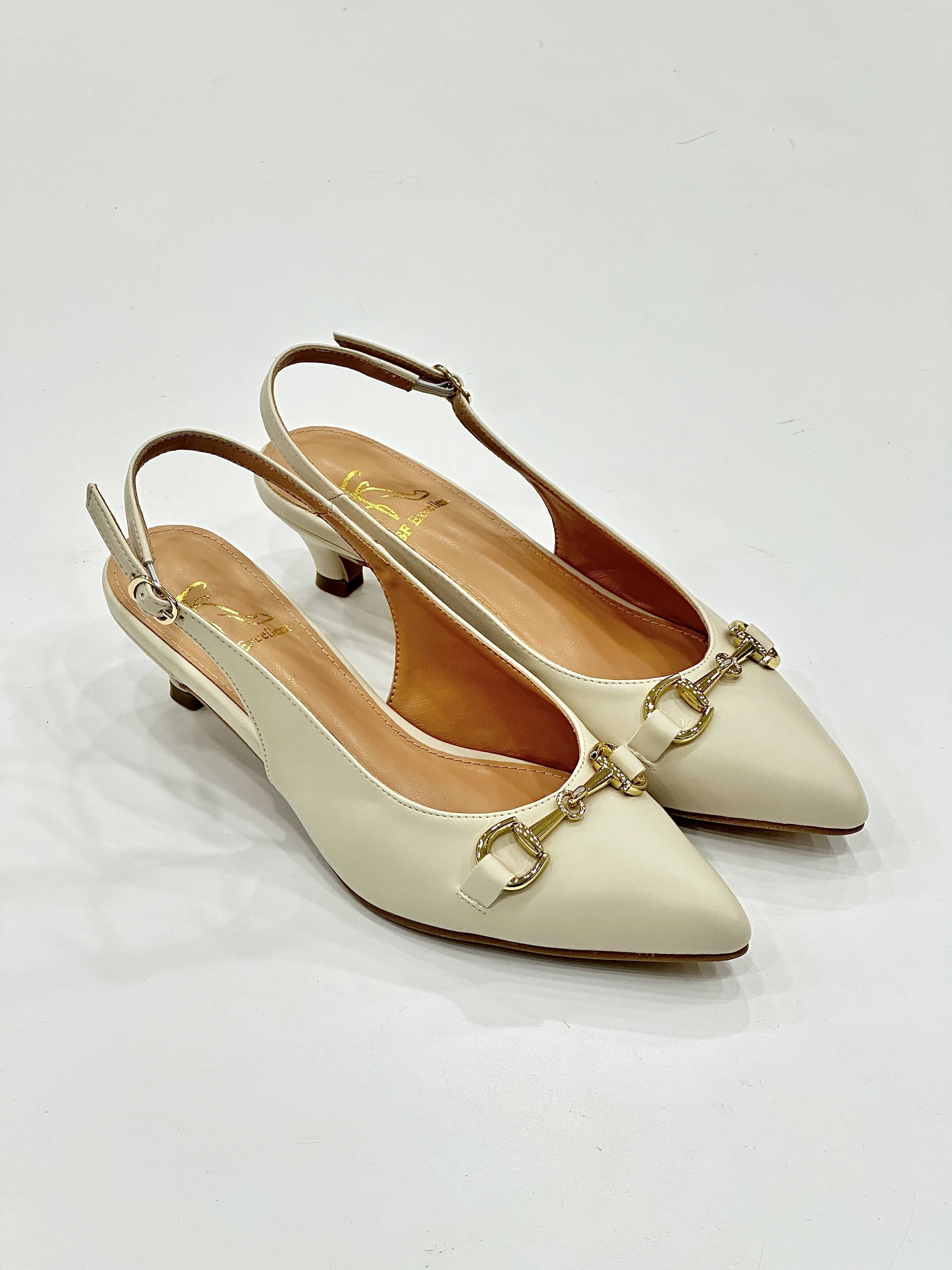 Leka Slingback Heels – Elegant and refined, these heels feature a chic 1.5-inch kitten heel for effortless comfort. Designed with a classic slingback strap and a touch of embellishment on the front, they bring subtle sparkle to any look. Available in timeless beige and black, perfect for both formal occasions and stylish everyday wear.